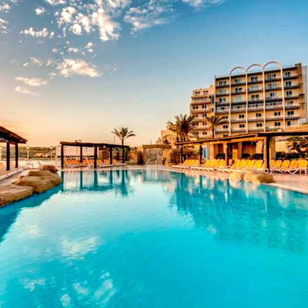 Hotel recentemente ristrutturato e costruito sul mare, si trova nel nord di Malta ed offre una splendida veduta di St.Paul’s Bay e delle sue isole. Dispone di 413 camere, la maggior parte con balcone, tutte dotate di a/c, telefono, TV , radio, asciugacapelli, minibar, cassetta di sicurezza. Presenza di rampe per disabili.